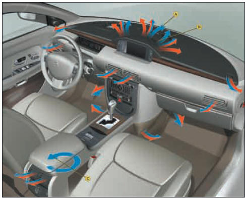 Par temps très chaud, pour obtenir une ventilation centrale et latérale plus satisfaisante, il est recommandé de fermer la climatisation à diffusion douce.