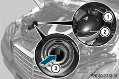 Le niveau du liquide de refroidissement dans le vase d'expansion 2 est correct s'il se situe environ 1,5 cm au-dessus du repère 3 à chaud.
