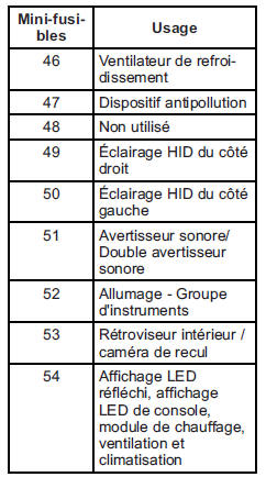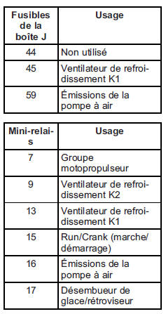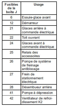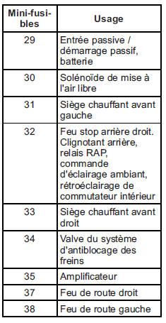 Le véhicule peut ne pas être équipé de tous les fusibles, relais et fonctions illustrés.
