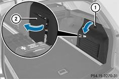 Mercedes-Benz Classe E: Boîte à fusibles dans le compartiment de chargement Veillez à ce que