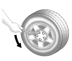 Au moment de remettre en place l'enjoliveur de roue ou le chapeau central sur la roue pleine grandeur, serrer les cinq capuchons en plastique à la main et leur donner un quart de tour supplémentaire à l'aide de la clé de roue.