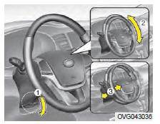 Kia Cadenza: Colonne de direction inclinable et télescopiqueLa colonne de direction inclinable vous permet d'ajuster la hauteur du volant avant de conduire. Vous pouvez aussi soulever le volant pour avoir plus d'espace pour les jambes en sortant et entrant dans le véhicule.