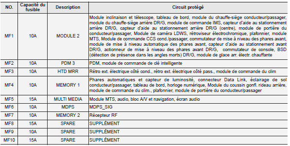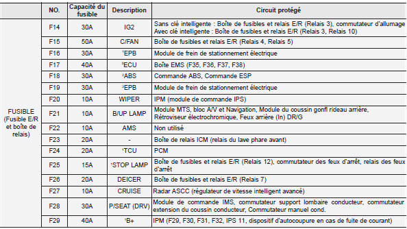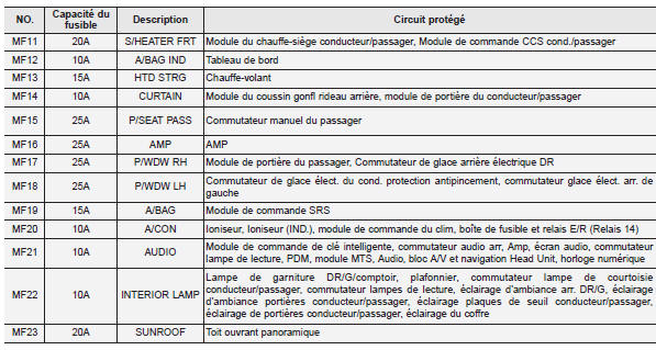 Les descriptions de fusibles peuvent ne pas toutes s'appliquer à votre véhicule. Elles étaient précises au moment de mettre sous presse.