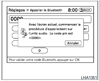 Consultez le guide de l'utilisateur de l'appareil BluetoothMD pour de plus amples renseignements.