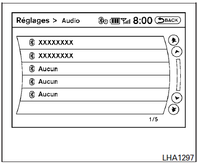 Pour régler les paramètres de l'appareil audio BluetoothMD, procédez comme suit :