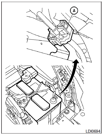 Le détecteur de courant A se trouve près de la batterie, le long du câble de masse de la batterie.