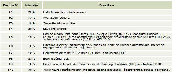 Peugeot 607: Fusibles compartiment moteurPour accéder aux fusibles situés dans le compartiment moteur, déposez le cache et déclipez le couvercle.