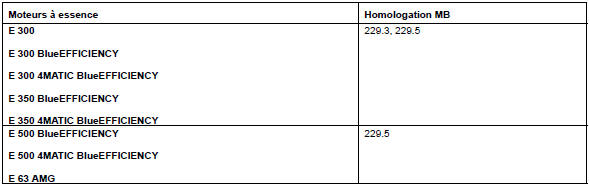 Vous pouvez consulter une vue d'ensemble des huiles moteur agréées sur le site Internet http://bevo.mercedes-benz.com en indiquant la spécification, par exemple 229.5.