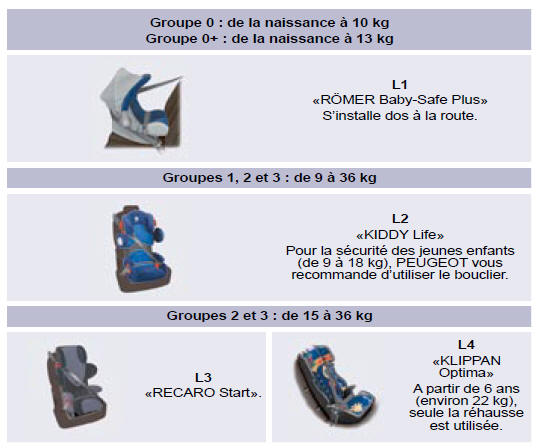 Peugeot 607: Les sièges enfants recommandés par peugeotPEUGEOT vous propose une gamme complète de sièges enfants référencés se fi xant à l'aide d'une ceinture de sécurité trois points :