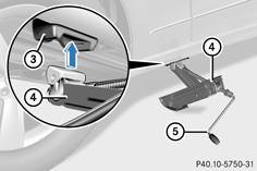 Véhicules AMG et véhicules avec équipement AMG : des caches permettant de protéger la carrosserie se trouvent sur la garniture des longerons, au niveau des points d'appui du cric.