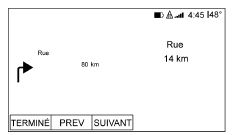 Appuyer sur la touche au-dessous de la touche d'écran SOURDINE pour mettre les instructions de navigation en sourdine. La sélection audio précédente est lue. La touche d'écran SOURDINE passe à RÉTABLI SON. Appuyer sur la touche au-dessous de RÉTABLI SON pour réactiver les instructions de navigation.