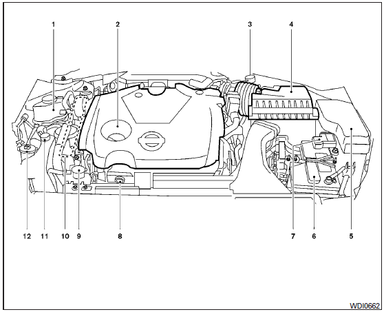 Nissan Maxima: Points de vérification dans le compartiment moteur