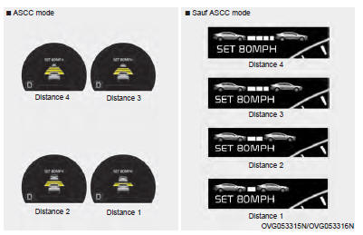 Chaque fois que vous appuyez sur le bouton, la distance avec l'autre véhicule change comme suit :