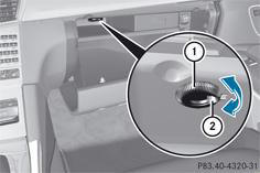 Lorsque le climatiseur automatique est en marche, la boîte à gants peut être ventilée, par exemple pour refroidir son contenu. Le débit d'air effectif dépend du débit et de la répartition d'air réglés.