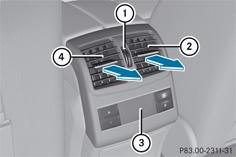 Mercedes-Benz Classe E: Réglage des buses arrièreRéglage des buses centrales arrière