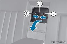 |  Vous devez toujours fermer la trappe qui se trouve dans le coffre lorsque vous ne vous servez pas du sac à skis. Vous éviterez ainsi que les personnes non autorisées n'accèdent au coffre depuis l'habitacle. |