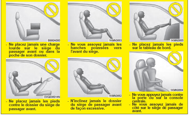 Le passager avant doit s'asseoir correctement pour éviter des blessures graves si le coussin gonflable se déploie.