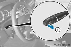 Le SPEEDTRONIC variable est sélectionné. Le voyant LIM 1 incorporé à la manette du TEMPOMAT est allumé.